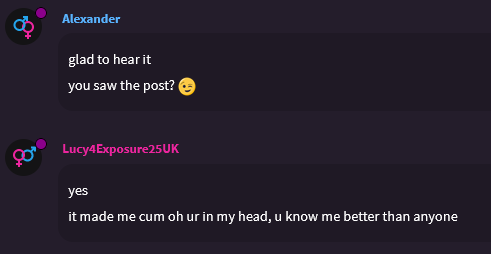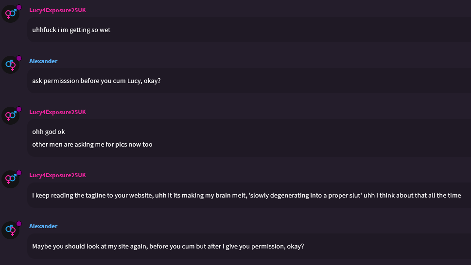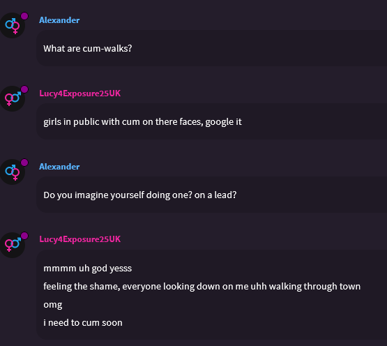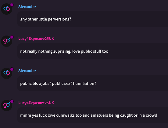 Lucy4Exposure : I know but I feel like it’s taking me over, I’m wearing shorter skirts and no knickers to work