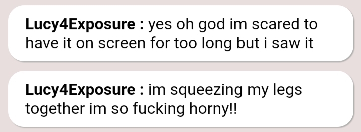 Lucy4Exposure : I know but I feel like it’s taking me over, I’m wearing shorter skirts and no knickers to work